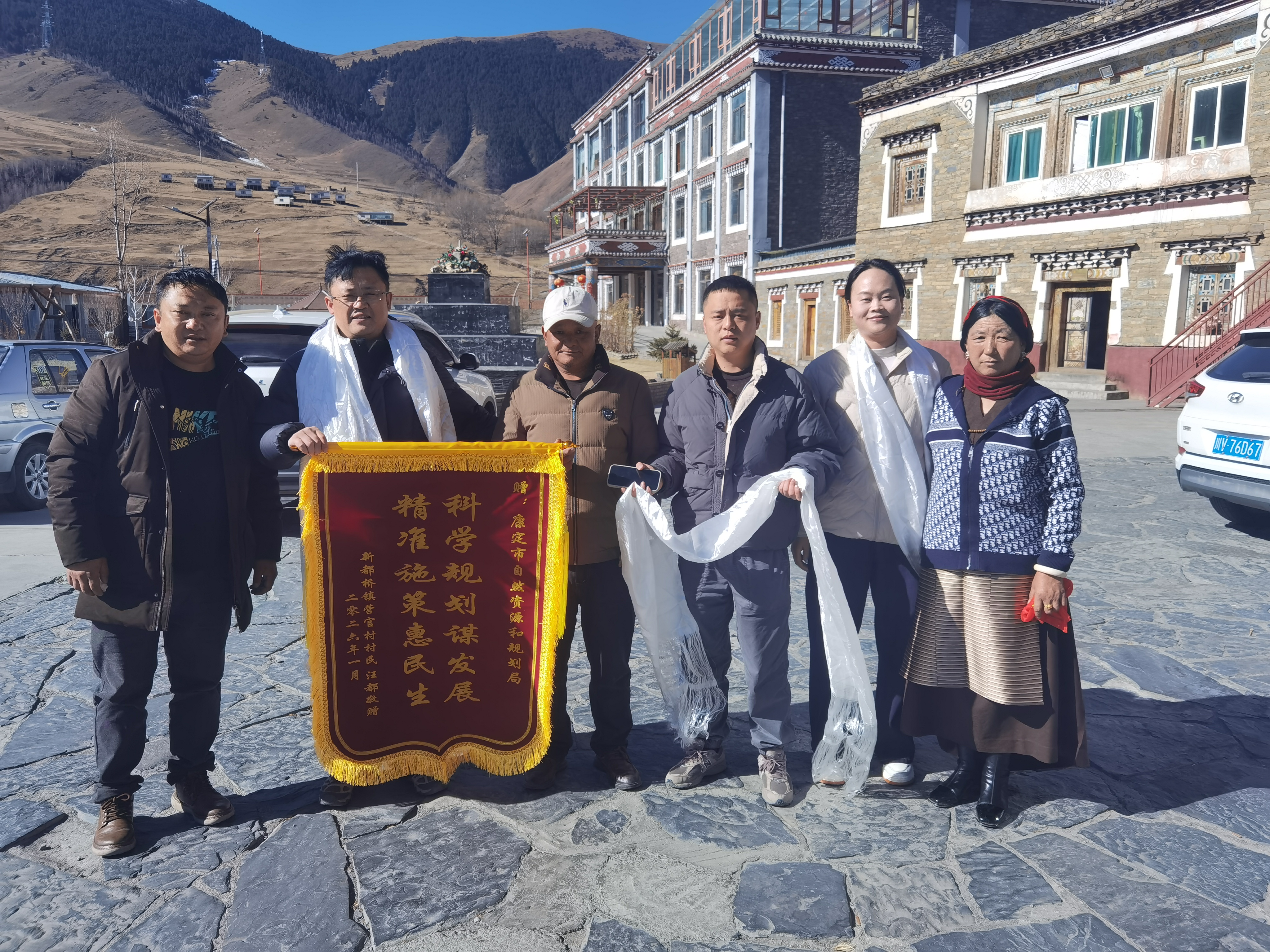 近日,康定市新都桥镇营官村1组128号滑坡治理工程顺利通过初步验收。当地群众满怀感激,自发组织向市自然资源和规划局赠送印有“精准施策惠民生,科学规划谋发展”的锦旗,以最质朴的方式,感谢党委政府切实办好民生实事,彻底消除地质灾害隐患,用心守护群众生命财产安全。