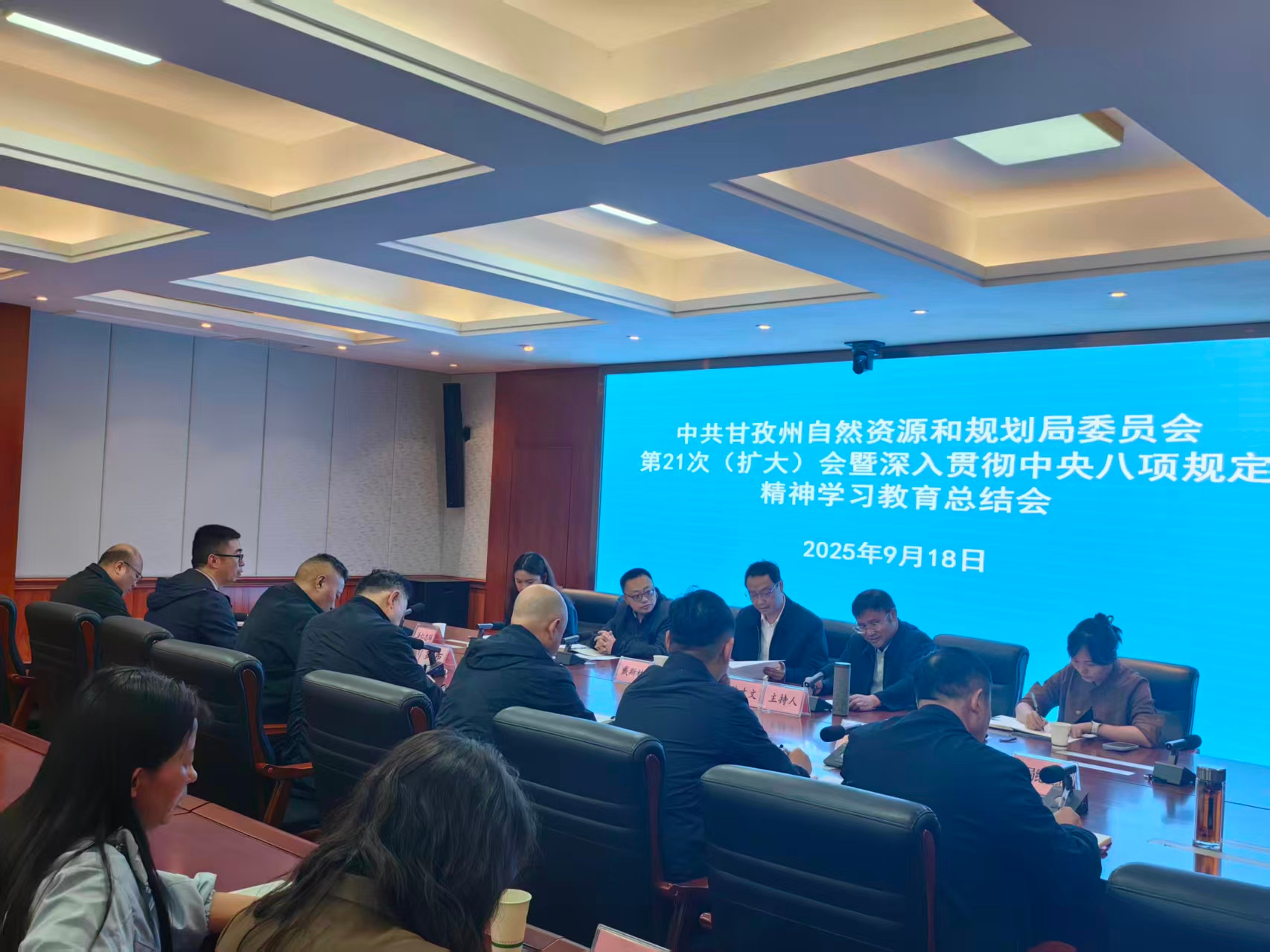 9月19日,甘孜州自然资源和规划局组织召开第21次党委(扩大)会暨深入贯彻中央八项规定精神学习教育总结会议,传达学习习近平总书记关于学习教育的重要指示精神及中央、省委和州委有关会议精神,听取全局深入贯彻中央八项规定精神学习教育开展情况汇报,并就持续推进作风建设常态化长效化作出部署。州委第一督导组到会指导并作点评讲话,局党委书记、局长陈才文主持会议并安排工作。
