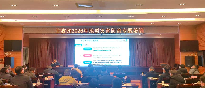 1月29日至30日,甘孜州自然资源和规划局在康定举办2026年全州地质灾害防治专题培训班。全州18个县(市)52名地质灾害防治业务骨干参加培训。本次培训坚持问题导向和目标导向,采取“理论授课、案例分析、实战演练”相结合教学模式,紧扣“提升防治能力、强化廉政建设”主题,着力提升参训人员专业素养和风险防控能力,为扎实推进年度地质灾害防治工作提供有力保障。